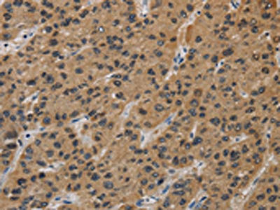 The image on the left is immunohistochemistry of paraffin-embedded Human liver cancer tissue using CSB-PA549134(INPPL1 Antibody) at dilution 1/40, on the right is treated with synthetic peptide. (Original magnification: ×200)