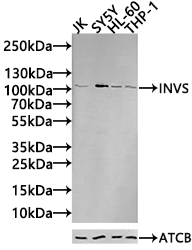Positive WB detected in: JK whole cell lysate(30μg), SY5Y whole cell lysate(30μg), HL-60 whole cell lysate(30μg), THP-1 whole cell lysate(30μg)
