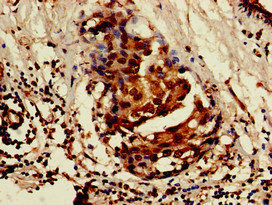 Immunohistochemistry of paraffin-embedded human breast cancer using CSB-PA839302LA01HU at dilution of 1:100