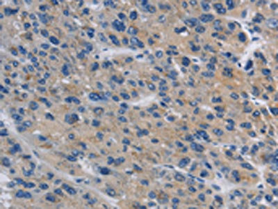 The image on the left is immunohistochemistry of paraffin-embedded Human liver cancer tissue using CSB-PA108283(ITGA11 Antibody) at dilution 1/20, on the right is treated with synthetic peptide. (Original magnification: ×200)