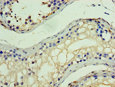 Immunohistochemistry of paraffin-embedded human testis tissue using CSB-PA03865A0Rb at dilution of 1:100