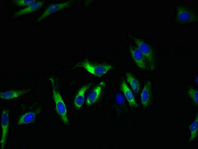 Immunofluorescent analysis of Hela cells using CSB-PA012022LA01HU at dilution of 1:100 and Alexa Fluor 488-congugated AffiniPure Goat Anti-Rabbit IgG(H+L)