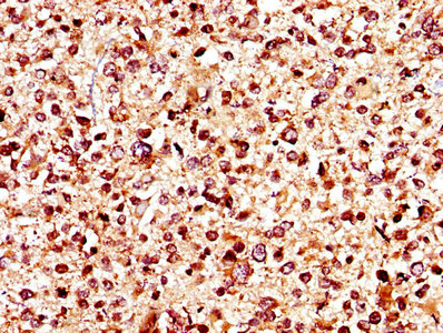 IHC image of CSB-PA012048LA01HU diluted at 1:400 and staining in paraffin-embedded human glioma performed on a Leica BondTM system. After dewaxing and hydration, antigen retrieval was mediated by high pressure in a citrate buffer (pH 6.0). Section was blocked with 10% normal goat serum 30min at RT. Then primary antibody (1% BSA) was incubated at 4°C overnight. The primary is detected by a biotinylated secondary antibody and visualized using an HRP conjugated SP system.