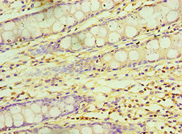 Immunohistochemistry of paraffin-embedded human colon tissue using CSB-PA836301ESR2HU at dilution of 1:100