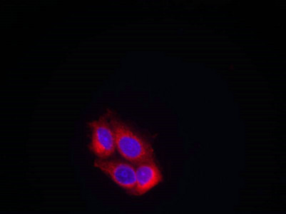 Immunofluorescence staining of methanol-fixed MCF cells using VEGFR2(Ab-951) Antibody.