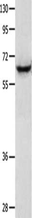 Gel: 10%SDS-PAGE, Lysate: 30 μg, Lane: Jurkat cells, Primary antibody: CSB-PA443781(KRT2 Antibody) at dilution 1/450, Secondary antibody: Goat anti rabbit IgG at 1/8000 dilution, Exposure time: 45 seconds