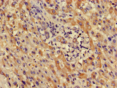 Immunohistochemistry of paraffin-embedded human liver cancer using CSB-PA801250LA01HU at dilution of 1:100