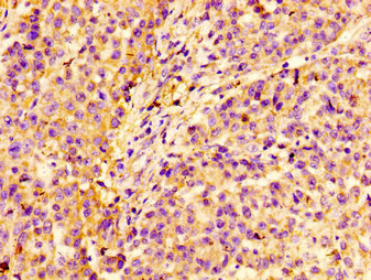 IHC image of CSB-PA012955EA01HU diluted at 1:100 and staining in paraffin-embedded human colon cancer performed on a Leica BondTM system. After dewaxing and hydration, antigen retrieval was mediated by high pressure in a citrate buffer (pH 6.0). Section was blocked with 10% normal goat serum 30min at RT. Then primary antibody (1% BSA) was incubated at 4°C overnight. The primary is detected by a biotinylated secondary antibody and visualized using an HRP conjugated SP system.