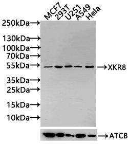 Positive WB detected in: MCF7 whole cell lysate(30μg), 293T whole cell lysate(30μg), U251 whole cell lysate(30μg), A549 whole cell lysate(30μg), Hela whole cell lysate(30μg)