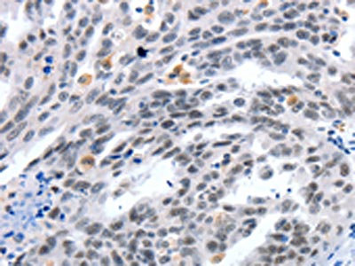 The image on the left is immunohistochemistry of paraffin-embedded Human ovarian cancer tissue using CSB-PA255528(LRP5 Antibody) at dilution 1/55, on the right is treated with synthetic peptide. (Original magnification: ×200)