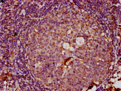 IHC image of CSB-PA026646LA01HU diluted at 1:100 and staining in paraffin-embedded human tonsil tissue performed on a Leica BondTM system. After dewaxing and hydration, antigen retrieval was mediated by high pressure in a citrate buffer (pH 6.0). Section was blocked with 10% normal goat serum 30min at RT. Then primary antibody (1% BSA) was incubated at 4°C overnight. The primary is detected by a biotinylated secondary antibody and visualized using an HRP conjugated SP system.