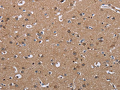 The image on the left is immunohistochemistry of paraffin-embedded Human brain tissue using CSB-PA781691(LUM Antibody) at dilution 1/40, on the right is treated with fusion protein. (Original magnification: ×200)