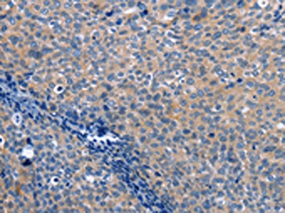 The image on the left is immunohistochemistry of paraffin-embedded Human cervical cancer tissue using CSB-PA533514(LXN Antibody) at dilution 1/25, on the right is treated with fusion protein. (Original magnification: ×200)