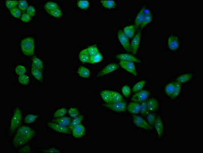 Immunofluorescent analysis of PC-3 cells using CSB-PA013416LA01HU at dilution of 1:100 and Alexa Fluor 488-congugated AffiniPure Goat Anti-Rabbit IgG(H+L)