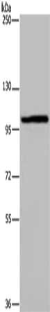 Gel: 6%SDS-PAGE, Lysate: 40 μg, Lane: LO2 cells, Primary antibody: CSB-PA791051(MAP3K11 Antibody) at dilution 1/400, Secondary antibody: Goat anti rabbit IgG at 1/8000 dilution, Exposure time: 40 seconds