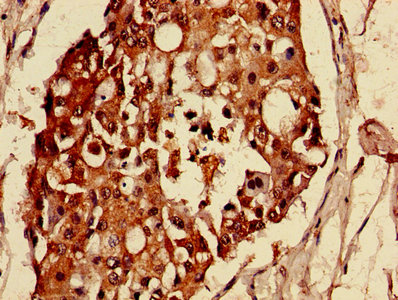 Immunohistochemistry of paraffin-embedded human breast cancer using CSB-PA013506LA01HU at dilution of 1:100
