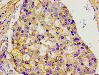 Immunohistochemistry of paraffin-embedded human breast cancer using CSB-PA013592LA01HU at dilution of 1:100