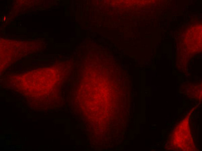 Immunofluorescence staining of methanol-fixed Hela cells using MDM2(Ab-166) Antibody.