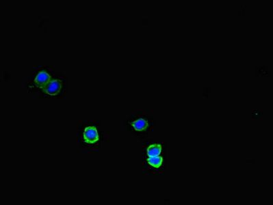 Immunofluorescent analysis of HepG2 cells using CSB-PA822242LA01HU at dilution of 1:100 and Alexa Fluor 488-congugated AffiniPure Goat Anti-Rabbit IgG(H+L)
