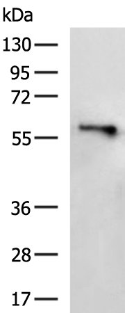 Gel: 8%SDS-PAGE, Lysate: 40 μg, Lane: Human placenta tissue lysate, Primary antibody: CSB-PA196650 (MFSD2A Antibody) at dilution 1/500, Secondary antibody: D110058(HRP-conjugated Goat anti rabbit IgG) at 1/5000 dilution, Exposure time: 1 minute