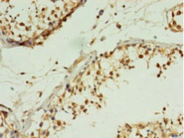 Immunohistochemistry of paraffin-embedded human testis tissue using CSB-PA875639LA01HU at dilution of 1:100