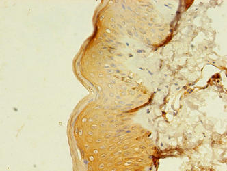 Immunohistochemistry of paraffin-embedded human skin tissue using CSB-PA621968LA01HU at dilution of 1:100
