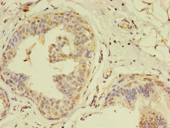 Immunohistochemistry of paraffin-embedded human breast cancer using CSB-PA621968LA01HU at dilution of 1:100