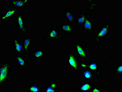 Immunofluorescent analysis of U251 cells using CSB-PA814229LA01HU at dilution of 1:100 and Alexa Fluor 488-congugated AffiniPure Goat Anti-Rabbit IgG(H+L)