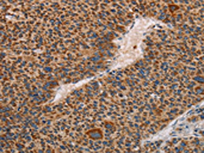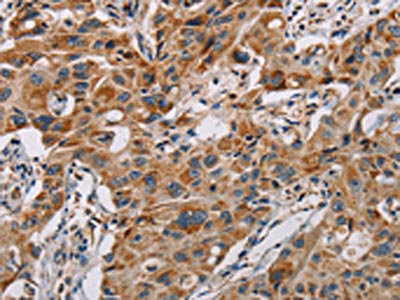 The image on the left is immunohistochemistry of paraffin-embedded Human liver cancer tissue using CSB-PA563995(MMP1 Antibody) at dilution 1/60, on the right is treated with fusion protein. (Original magnification: ×200)