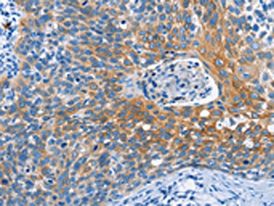 The image on the left is immunohistochemistry of paraffin-embedded Human cervical cancer tissue using CSB-PA940735(MMP2 Antibody) at dilution 1/60, on the right is treated with synthetic peptide. (Original magnification: ×200)