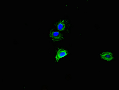 Immunofluorescent analysis of Hela cells using CSB-PA06879A0Rb at dilution of 1:100 and Alexa Fluor 488-congugated AffiniPure Goat Anti-Rabbit IgG(H+L)