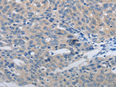 The image is immunohistochemistry of paraffin-embedded Human ovarian cancer tissue using CSB-PA670355(MMP8 Antibody) at dilution 1/45. (Original magnification: ×200)