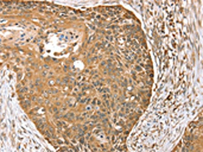 The image on the left is immunohistochemistry of paraffin-embedded Human esophagus cancer tissue using CSB-PA146109(MORF4L1 Antibody) at dilution 1/35, on the right is treated with synthetic peptide. (Original magnification: ×200)