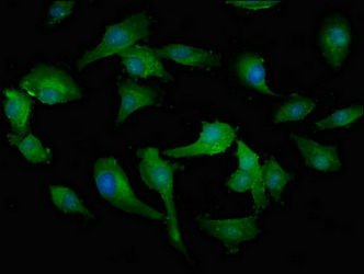 Immunofluorescent analysis of U251 cells using CSB-PA014770LA01HU at dilution of 1:100 and Alexa Fluor 488-congugated AffiniPure Goat Anti-Rabbit IgG(H+L)