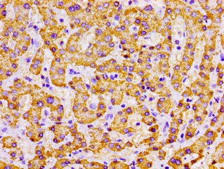 Immunohistochemistry of paraffin-embedded human liver cancer using CSB-PA014770LA01HU at dilution of 1:100