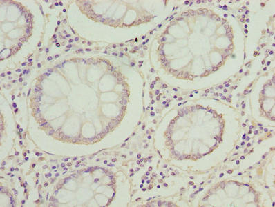 Immunohistochemistry of paraffin-embedded human colon cancer using CSB-PA014819LA01HU at dilution of 1:100