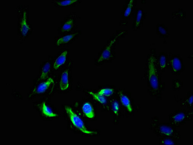 Immunofluorescent analysis of Hela cells using CSB-PA875636LA01HU at dilution of 1:100 and Alexa Fluor 488-congugated AffiniPure Goat Anti-Rabbit IgG(H+L)
