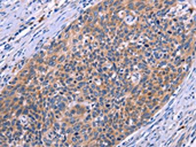 The image on the left is immunohistochemistry of paraffin-embedded Human cervical cancer tissue using CSB-PA955910(MSMO1 Antibody) at dilution 1/20, on the right is treated with synthetic peptide. (Original magnification: ×200)