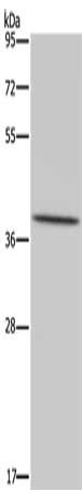 Gel: 8%SDS-PAGE, Lysate: 40 μg, Lane: Hela cells, Primary antibody: CSB-PA149107(MT-ND1 Antibody) at dilution 1/450, Secondary antibody: Goat anti rabbit IgG at 1/8000 dilution, Exposure time: 3 minutes