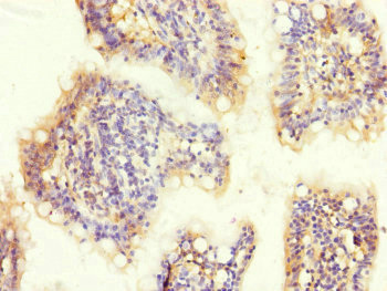 Immunohistochemistry of paraffin-embedded human small intestine tissue using CSB-PA669874ESR2HU at dilution of 1:100