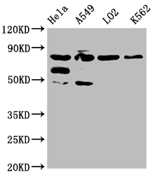 Positive WB detected in: Hela whole cell lysate, A549 whole cell lysate, L02 whole cell lysate, K562 whole cell lysate