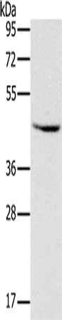 Gel: 8%SDS-PAGE, Lysate: 40 μg, Lane: Raji cells, Primary antibody: CSB-PA229254(MVK Antibody) at dilution 1/300, Secondary antibody: Goat anti rabbit IgG at 1/8000 dilution, Exposure time: 2 seconds