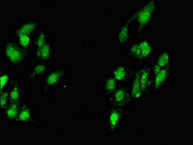 Immunofluorescent analysis of Hela cells using CSB-PA015288LA01HU at dilution of 1:100 and Alexa Fluor 488-congugated AffiniPure Goat Anti-Rabbit IgG(H+L)