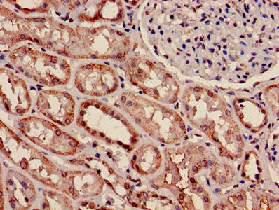 Immunohistochemistry of paraffin-embedded human kidney tissue using CSB-PA01405A0Rb at dilution of 1:100