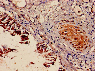 Immunohistochemistry of paraffin-embedded human lung tissue using CSB-PA01405A0Rb at dilution of 1:100