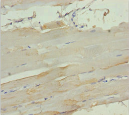 Immunohistochemistry of paraffin-embedded human skeletal muscle tissue using CSB-PA015310DSR2HU at dilution of 1:100