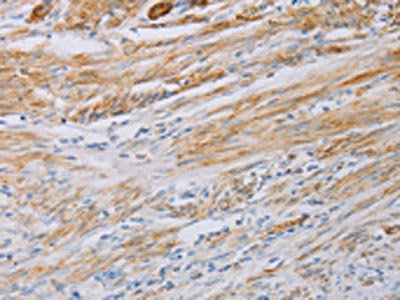 The image on the left is immunohistochemistry of paraffin-embedded Human cervical cancer tissue using CSB-PA590716(MYL6 Antibody) at dilution 1/40, on the right is treated with fusion protein. (Original magnification: ×200)