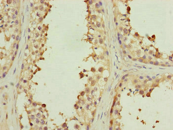Immunohistochemistry of paraffin-embedded human testis tissue using CSB-PA855506ESR2HU at dilution of 1:100