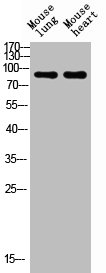 Western blot analysis of mouse-lung mouse-heart lysis using NCAM1 antibody. Antibody was diluted at 1:1000. Secondary antibody was diluted at 1:20000