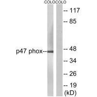 Western blot analysis of extracts from colo cells, using Neutrophil Cytosol Factor 1 (Ab-304) antibody.